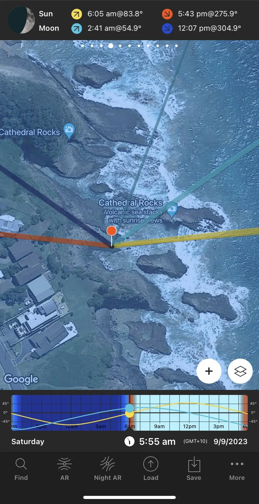 Further more you can see other great information like sun/moon rise times, Live AR to track the milky way position in real time to see how it lines up with objects in front of yourself, Timers and even exposure calculators.